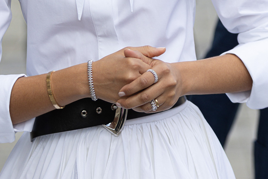 Лявата ѝ ръка беше пъхната мистериозно в джоба, въпреки че камерите успяха да я уловят - актрисата носеше златна халка на безименния си пръст.
