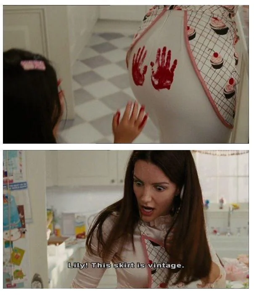 Един от най-запомнящите се моменти остава сцената, в която Шарлот носи винтидж бежова пола на Валентино - символ на изтънченост, сантимент и вечна класа, която по-късно комично е съсипана от детето ѝ. Сцената е едновременно болезнена и човешка: сблъсък между идеалната елегантност и реалния живот, в който дори най-красивите неща не са недосегаеми.