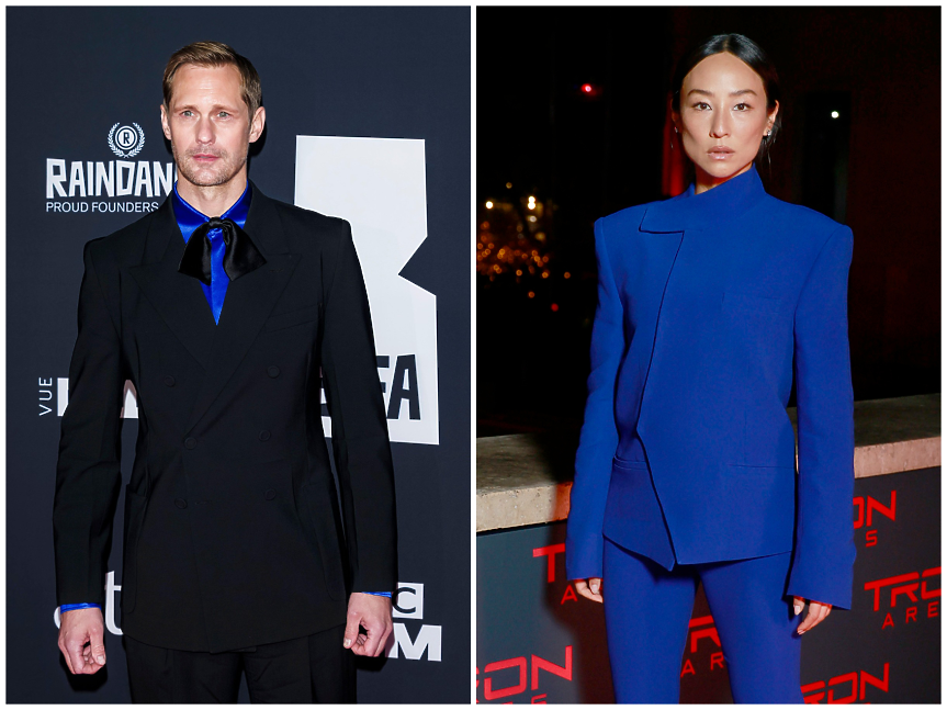 В същата седмица, в която Джонсън заложи на яркия нюанс, Грета Лий промотира „Трон: Арес“ в прилепнал, току-що излязъл от модния подиум костюм Luar. Александър Скарсгард, който също е във фокуса на пресата за филма си “Pillion”, привлече Алесандро Микеле да създаде персонализиран костюм Valentino с електриково копринено закопчаване.
